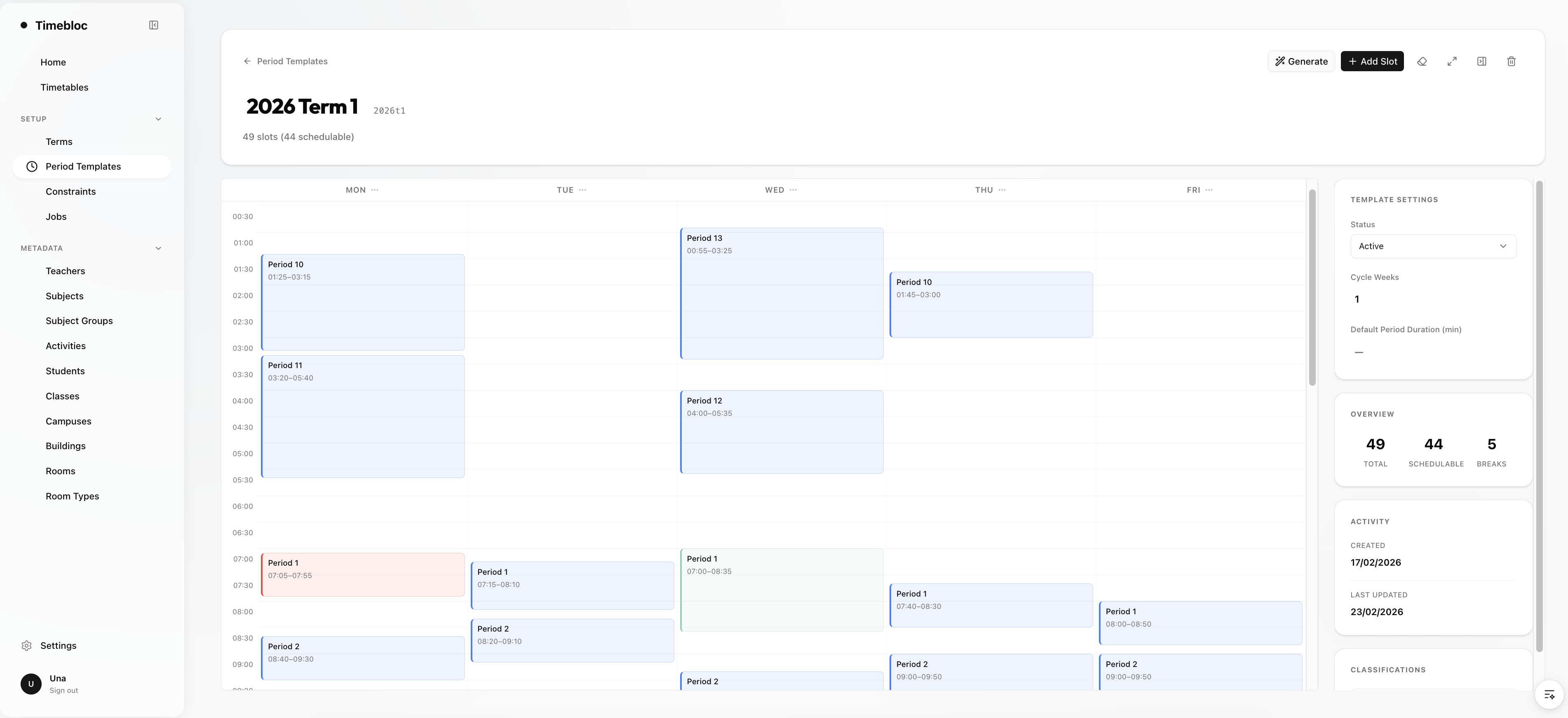 timebloc.ai combines structured resource modelling with advanced optimisation algorithms to generate efficient, conflict-free schedules. Whether you manage classrooms, staff rosters, equipment fleets, or operational teams, timebloc brings clarity and automation to complex planning environments. Built on modern cloud infrastructure, timebloc is designed for scalability, performance, and enterprise reliability.